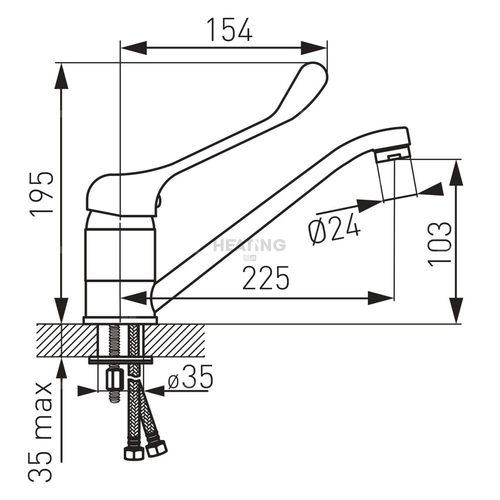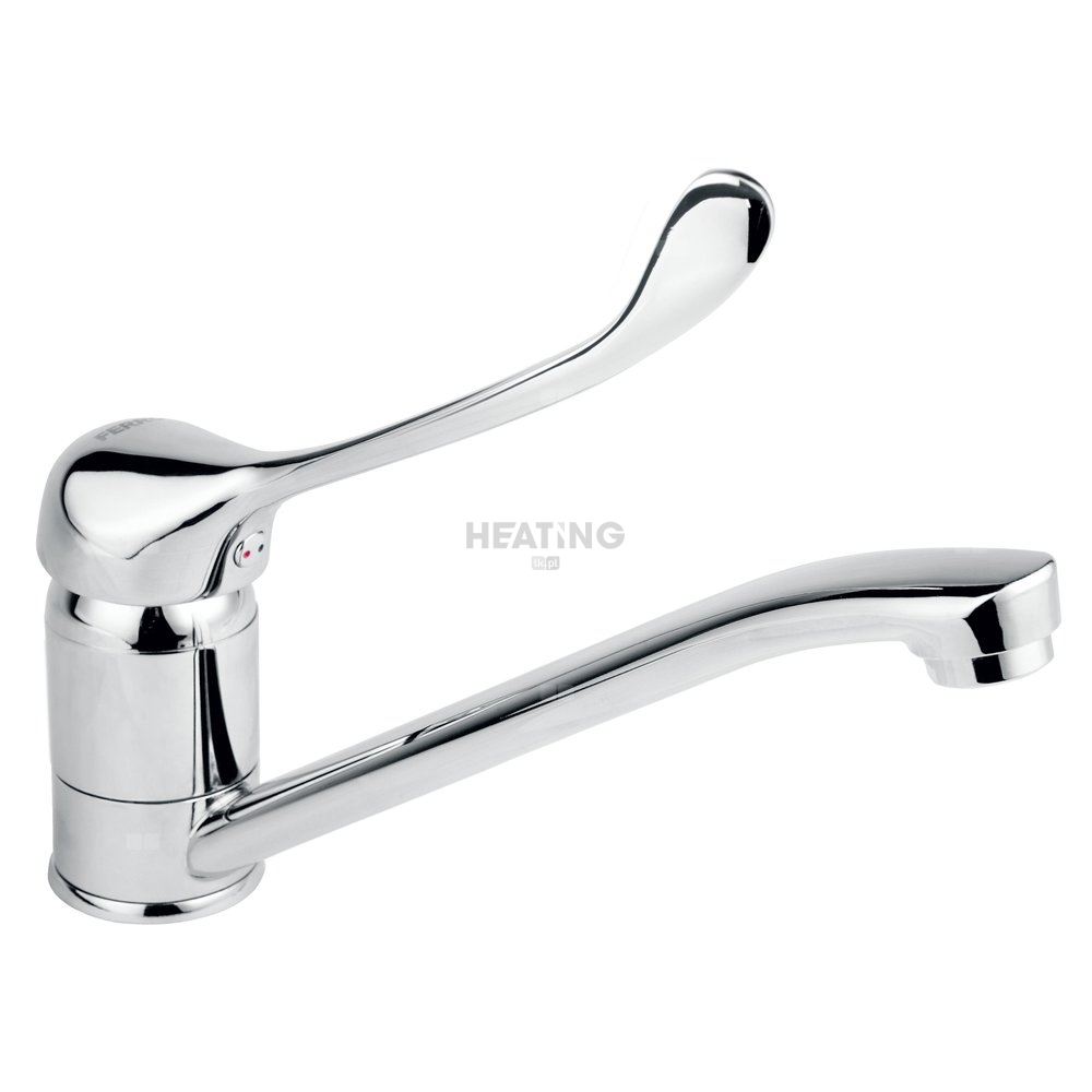 Bateria zlewozmywakowa medyczna o charakterystycznym owalnym kształcie. Obły kształt korpusu i wylewki ułatwi utrzymanie baterii w czystości, krople wody nie będą osiadać, pozostawiając przy tym mniej osadu wapiennego. Produkt posiada uchwyt medyczny z przedłużoną dźwignią, który ułatwia regulacje strumienia oraz temperatury wody. Obrotowa wylewka baterii zwiększa jej funkcjonalność.