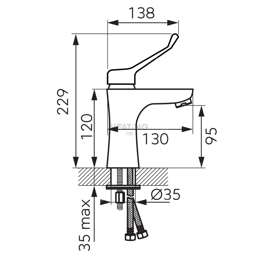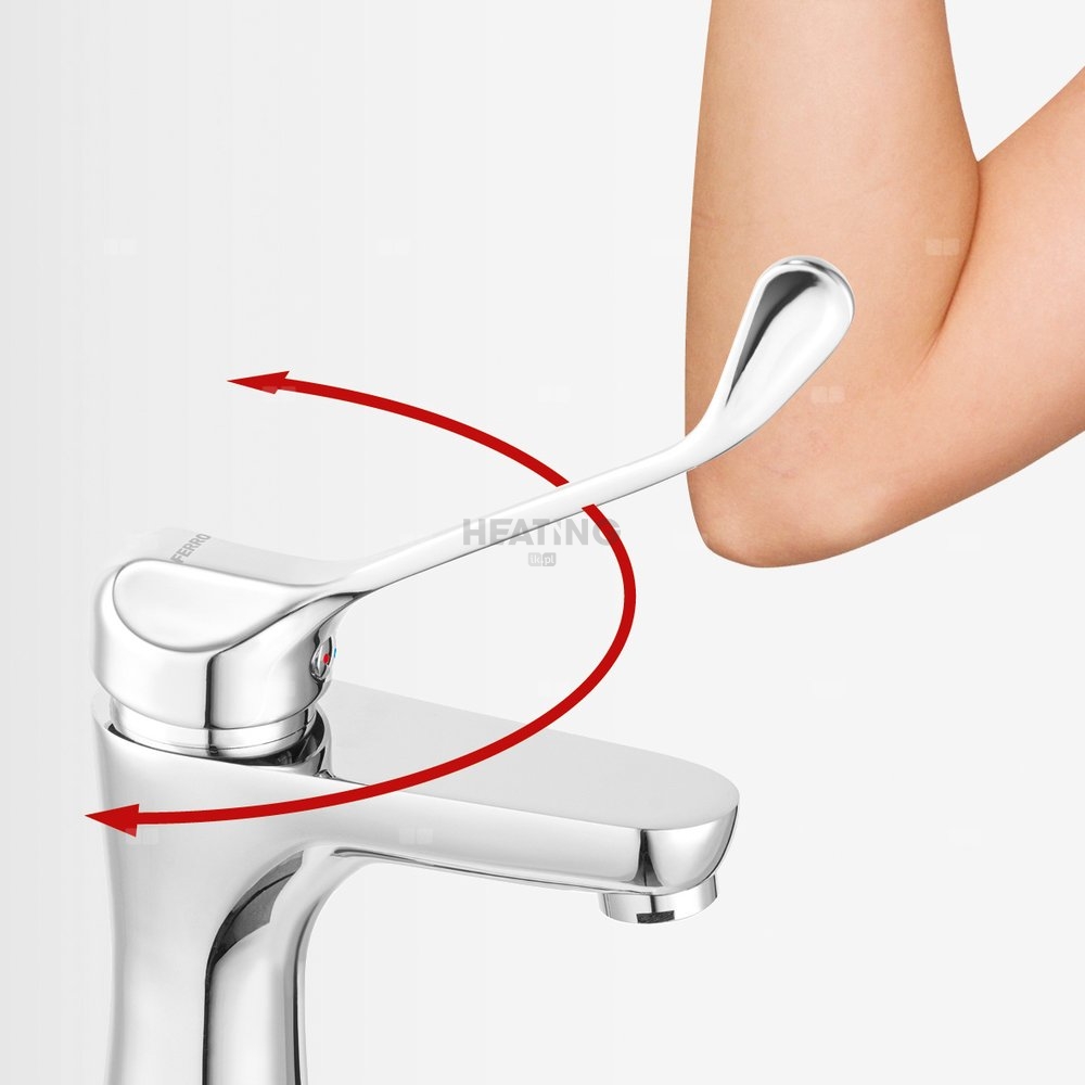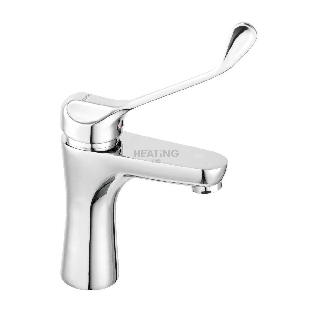 Bateria umywalkowa o charakterystycznym, owalnym kształcie. Obły kształt korpusu i wylewki ułatwi utrzymanie baterii w czystości, krople wody nie będą osiadać, pozostawiając przy tym mniej osadu wapiennego. Produkt posiada uchwyt medyczny z przedłużoną dźwignią, który ułatwia regulacje strumienia oraz temperatury wody.