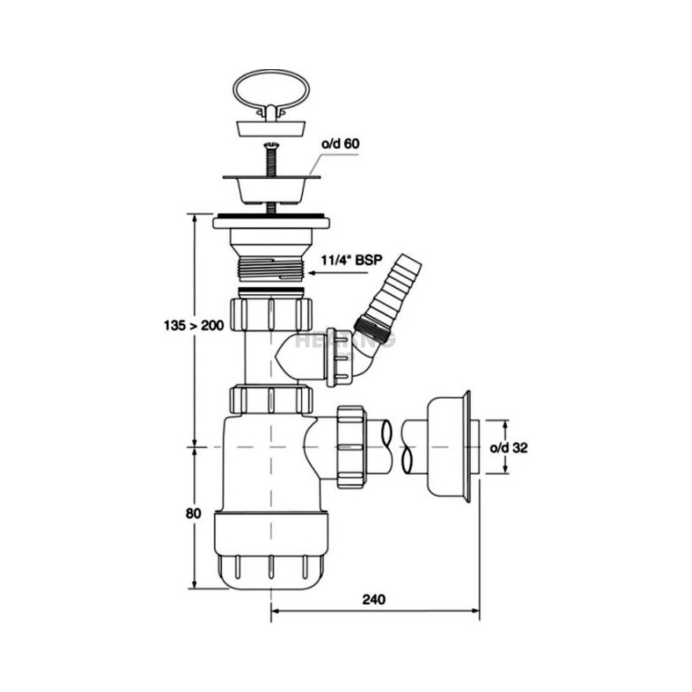 Syfon umywalkowy butelkowy "niski" 11/4"x32mm z podłączeniem pralki lub zmywarki