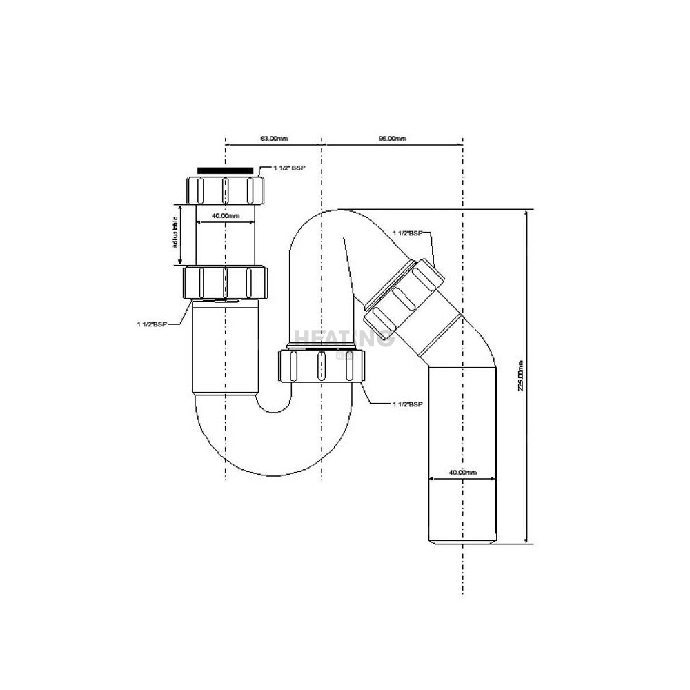 Syfon zlewozmywakowy rurowy 11/2"x40mm, bez spustu.