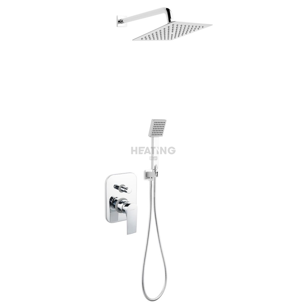 Kompletny podtynkowy zestaw natryskowy składający się z dwufunkcyjnej baterii w nowoczesnym stylu, wyposażonej w przełącznik z funkcją Anti-Stop. W zestawie znajdziemy także kwadratową deszczownicę w modnym designie typu slim z ramieniem prysznicowym, praktyczną rączkę natryskową z systemem łatwego usuwania kamienia Ferro Easy Clean, przyłącze kątowe z uchwytem i trwałym wężem prysznicowym w oplocie z metalu.