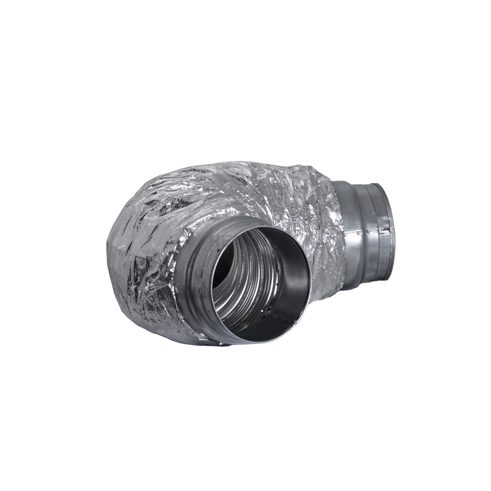 Elastyczny tłumik akustyczny wykonany z perforowanego przewodu ALNOR FLEX. Zastosowana izolacja o grubości 25 mm osłonięta jest płaszczem polietylenowym. Tłumiki wykonane są z materiałów niepalnych.