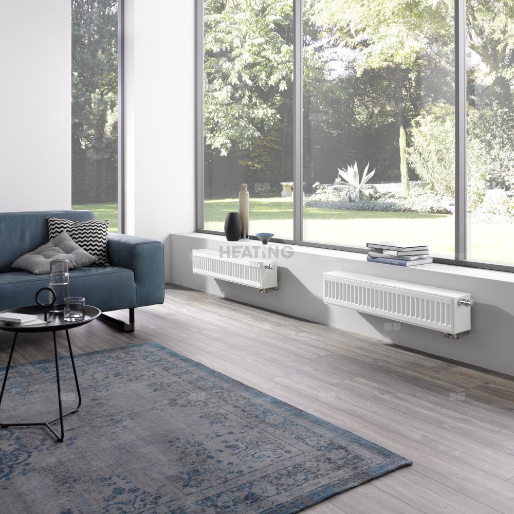 Grzejnik zaworowy Kermi jest podłączany od dołu z boku. Wkładka zaworowa ze wstępnie nastawionymi wartościami kv w grzejnikach zaworowych jest montowana fabrycznie.
