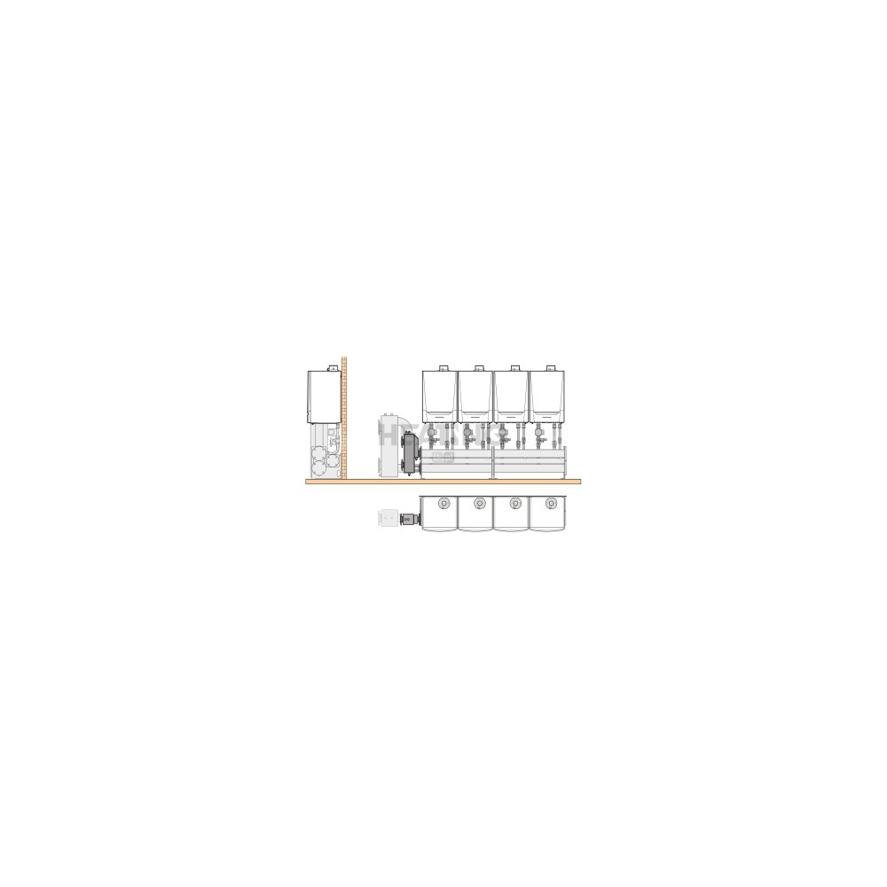 - jeśli wymagany ze względu na konfigurację kotłów (w linii lub nieparzyście tyłem do siebie), zestawy zaślepiające wolne podłączenia kotła na kolektorze